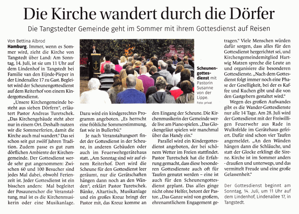 Im April 2019 wurde unser Kindergottesdienstteam in der „Sagen Sie danke“ Aktion vom Hamburger Abendblatt ausgezeichnet!