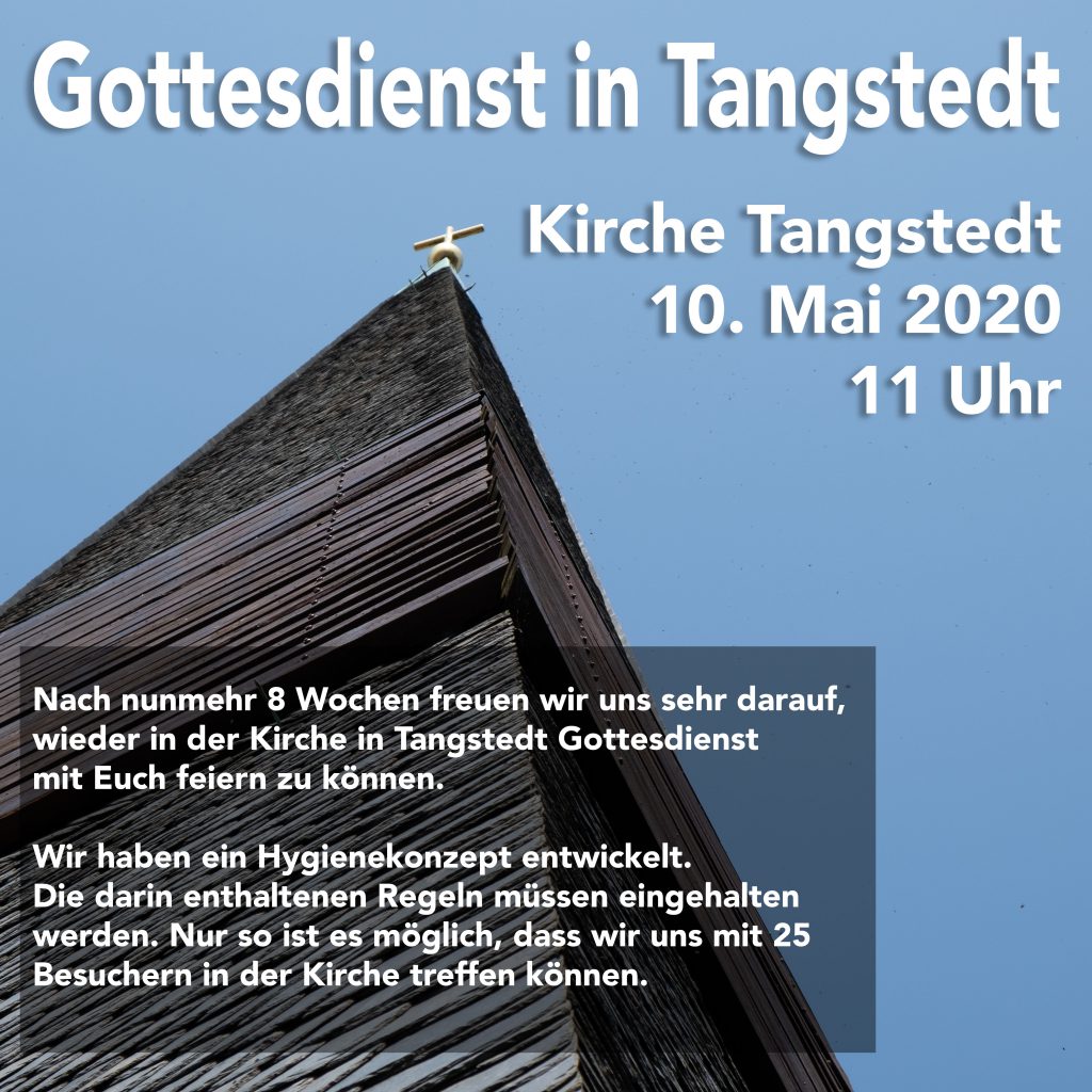 Mit dem heutigen Sonntag starten wir wieder mit der Durchführung von Gottesdiensten. Wir haben ein Hygienekonzept erarbeitet, welches die Corona-Ansteckungsgefahr soweit reduziert, dass wir wieder persönlich zusammenkommen können: