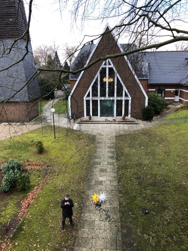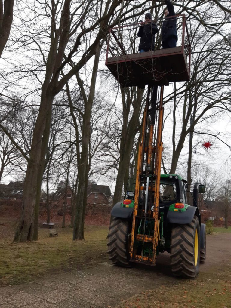 Seit heute leuchten drei große Herrnhuter Sterne vor der Kirche in Tangstedt. Vielen Dank an die liebe Tangstedter Familie, die diese der Kirchengemeinde gespendet hat. Vielen Dank auch an Thomas Pieper vom Gut Tangstedt, der die Jungs vom Bauausschuss der Kirchengemeinde mit schwerem Gerät in luftige Höhen gebracht hat.